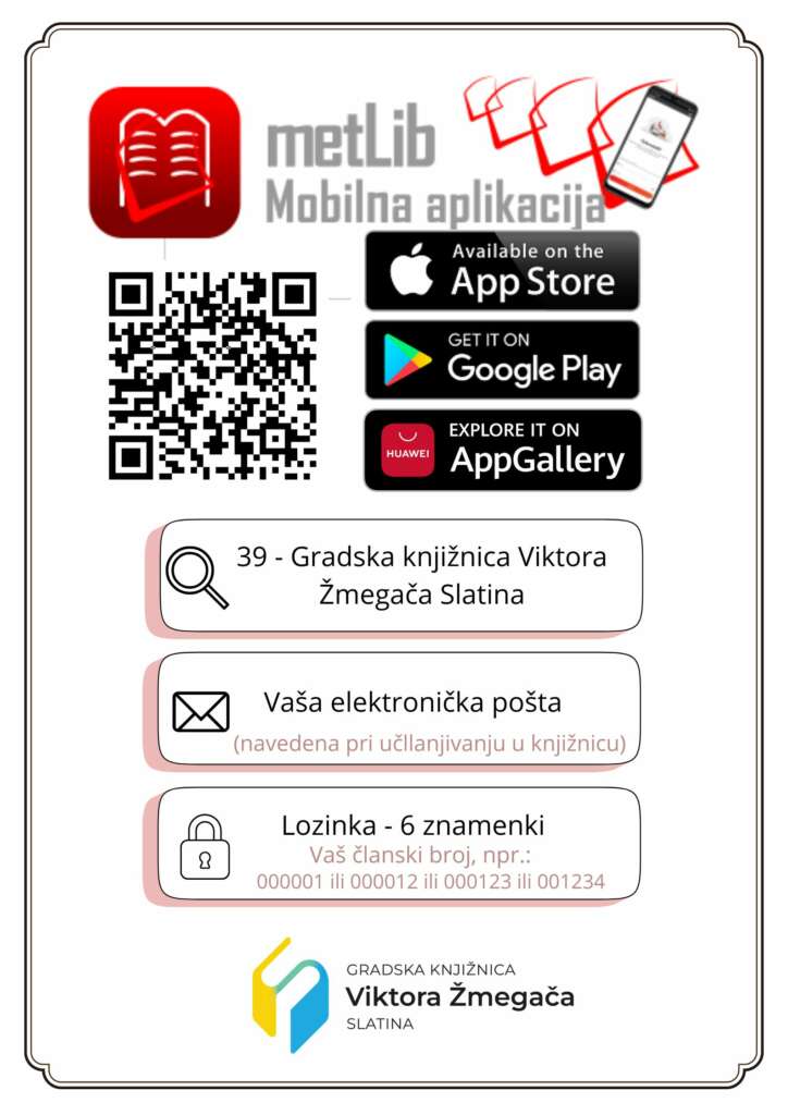 Obavještavamo drage korisnike kako je aplikacija Gradska knjižnica Slatina dobila svoju novu verziju uz poboljšane postavke i nove mogućnosti.