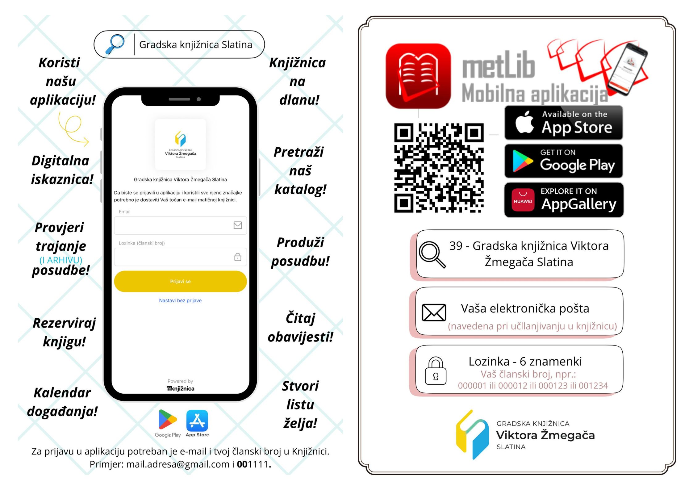 Obavještavamo drage korisnike kako je aplikacija Gradska knjižnica Slatina dobila svoju novu verziju uz poboljšane postavke i nove mogućnosti.