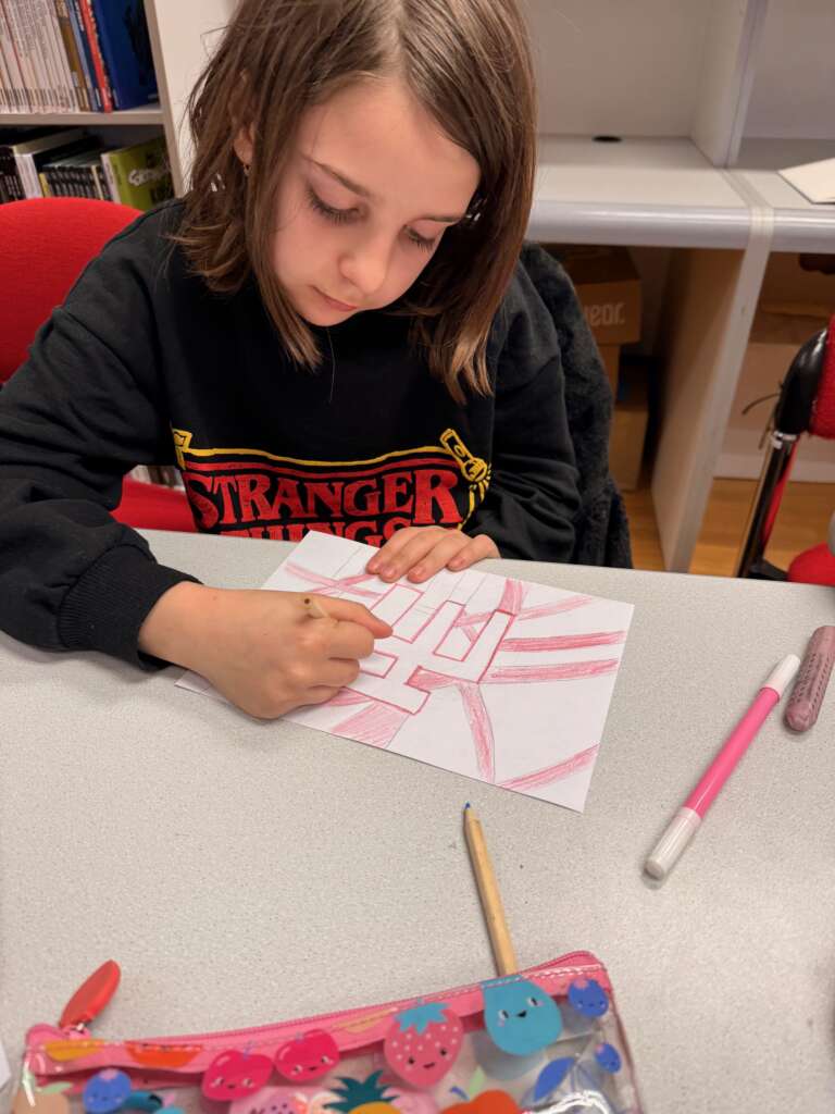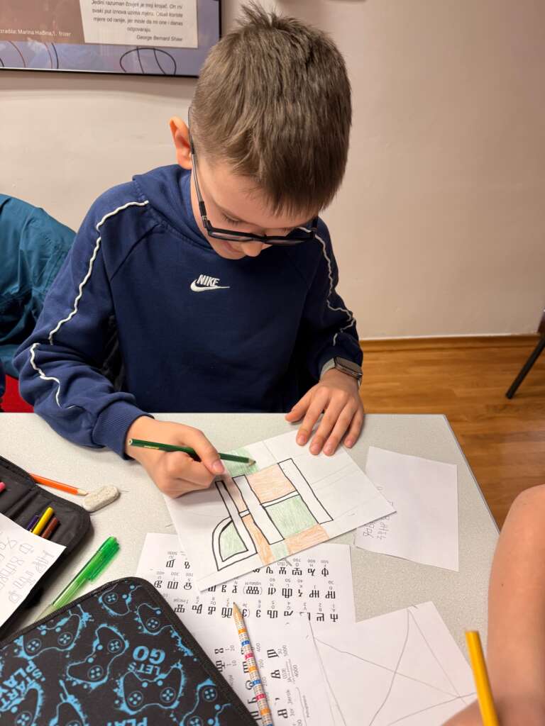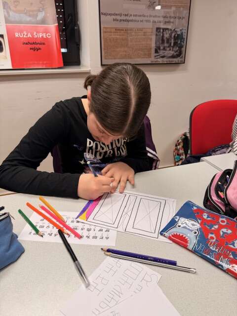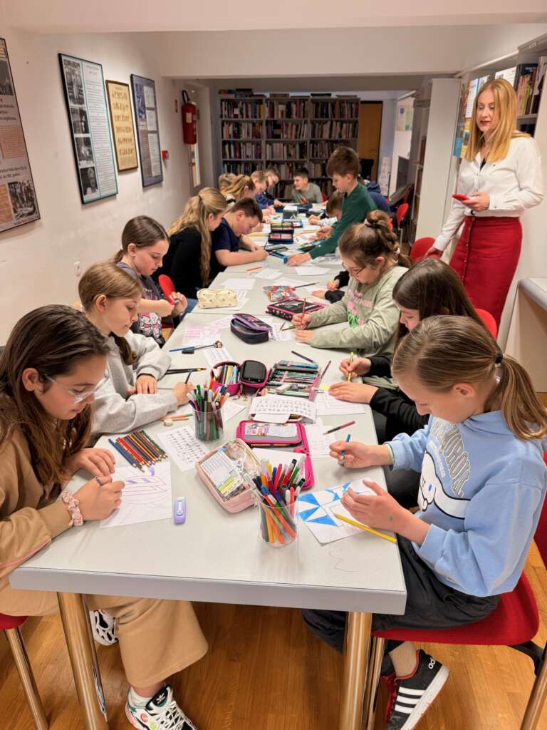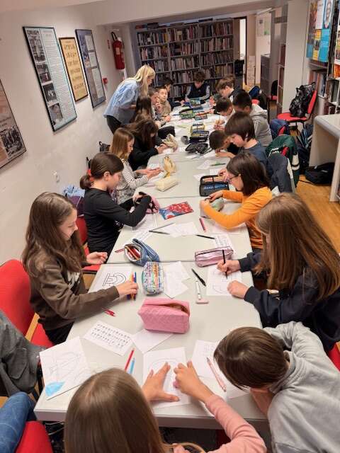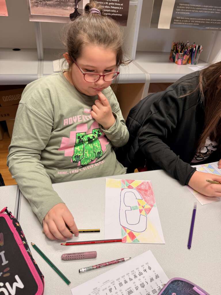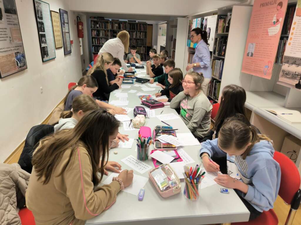 U suradnji s OŠ Josipa Kozarca, Slatina, odnosno školskom knjižničarkom Jelenom Martinović, učiteljicama Sanjom Hmelik i Sanjom Vukovski, te učenicima 4.a i 4.b razreda organizirali smo dvije radionice pod nazivom “Glagoljati” čija je tema bila glagoljica. Ovim radionicama podsjetili smo učenike na naše prvo pismo. Glagoljicu su učenici već obradili u sklopu nastavnog kurikuluma, a u našoj su knjižnici svoje znanje primijenili u likovnom izražavanju.