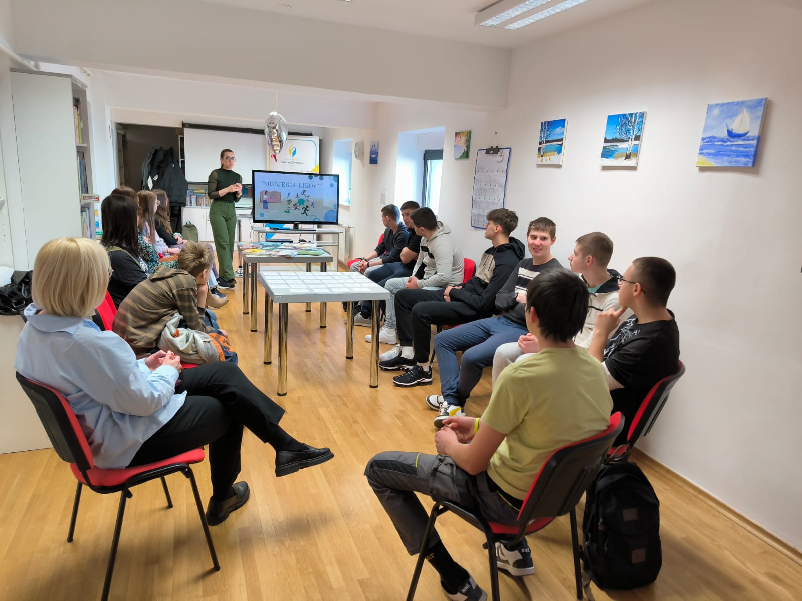 U četvrtak, 26. veljače, posjetili su nas učenici Industrijsko-obrtničke škole Slatina, smjera pomoćni krojač i pomoćni stolar, u pratnji profesorica hrvatskog jezika Ivane Lukač Vuković i Helene Roštaš. Učenicima je pripremljena radionica “Odbjegli likovi” koja je spojila poznata hrvatska i svjetska djela dječje i književnosti za mlade sa zabavnim igrama. Kroz nekoliko aktivnosti odnosno kviz znanja, igru pamćenja (memory) i korištenje zvučnog zida učenici su se prisjetili mnogih popularnih književnih djela i njihovih glavnih likova, zabavili se i opustili. Iako su prve reakcije bile ponešto rezervirane, igrajući se shvatili su da zapravo sva spomenuta djela dobro poznaju.